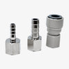 Includes one of each: 1/4" hose barb adapter, 3/8" hose barb adapter, and 3/8" push-to-connect tubing fitting.