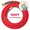 SPARC’s premium 100FT 1/4" Oxy Acetylene Welding Hose is engineered to deliver reliable, long-lasting performance in even the toughest environments. Built with high-grade Grade T synthetic rubber, it efficiently transports oxygen and acetylene gases to your welding torch or cutting equipment. Designed with strain relief at the fittings, this hose helps eliminate cracking and fraying at connection points—dramatically extending hose life. Whether you’re working in a shop or on a job site, this hose is built to handle it all.
